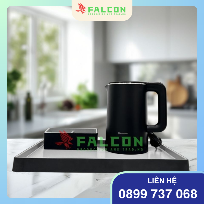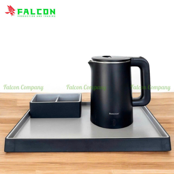 Bộ ấm siêu tốc Honeyson 3 chi tiết là lựa chọn hoàn hảo cho phòng khách sạn. Bộ gồm khay đặt, hộp trà và ấm siêu tốc. Thiết kế đồng bộ giúp tạo không gian sang trọng. Bộ sản phẩm mang lại sự tiện nghi tối đa cho khách lưu trú.