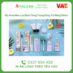 Falcon phân phối bộ amenities lúa mạch đóng túi màng nhôm chất lượng cao. Combo 8 món đóng gói đẹp và sạch sẽ. Hỗ trợ giá tốt cho khách sạn đặt số lượng lớn.