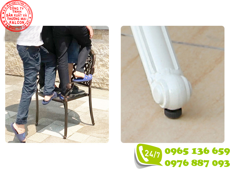 Do bộ bàn ghế có trọng lượng lớn, kích thước lớn nên trong quá trình vận chuyển hàng sẽ có gặp những sự cố không như ý muốn: móp méo, tróc sơn, trầy xước,.. hãy liên hệ với bên công ty Falcon để được giải quyết kịp thời và đem lại cho khách hàng sản phẩm mà khách hàng mong muốn