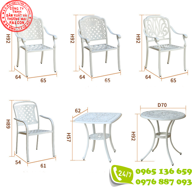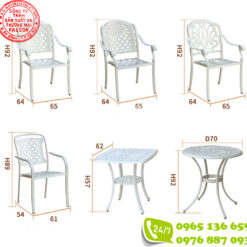 Trên đây là những thông số của bàn ghế nhôm đúc ngoài trời, với những thông số này quý khách hàng có thể hình dung ra được sản phẩm phù hợp với không gian của khách sạn, resort, khu nghỉ dưỡng,.. của mình