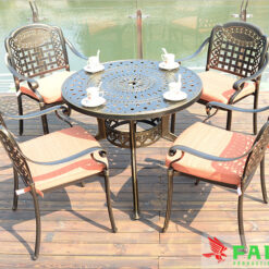 Bộ bàn ghế nhôm đúc ngoài trời gồm có : 1 bàn to và 4 – 6 cái ghế được đặt, sắp xếp xung quanh tạo không khí gần gũi, gia đình