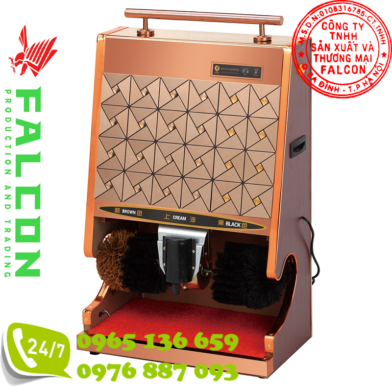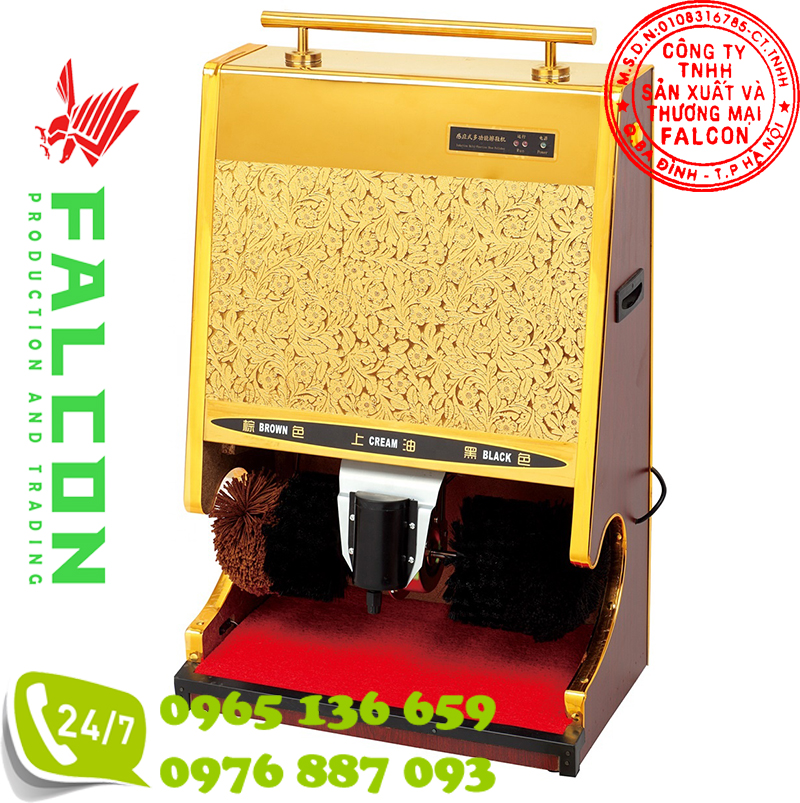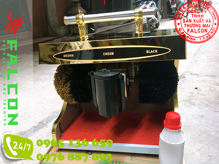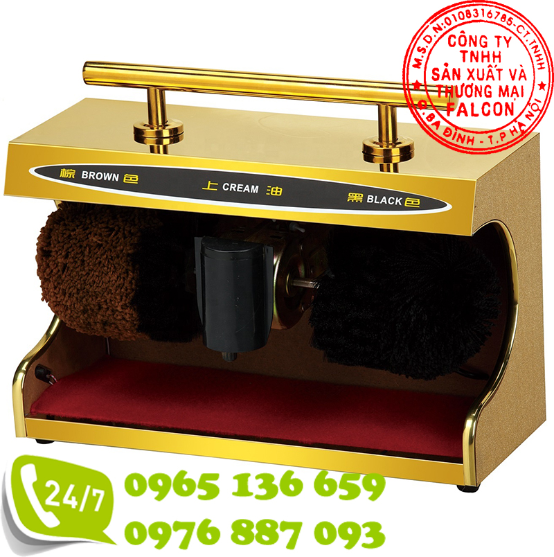Hệ thống đánh giày của máy được trang bị 4 chổi đánh 2 chổi đánh bóng và 2 chổi đánh sạch kết hợp với động cơ mạnh mẽ, chất liệu chổi được làm từ sợi tơ mềm không gây bong tróc khi đánh giày. Máy sử dụng loại điện áp 110-220V, 220-240V với công suất 45W.