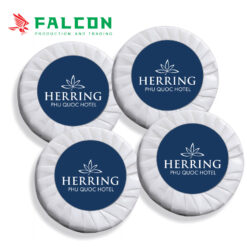 - Tem dán nhãn xà bông : Đường kính 30 mm in logo Herring – Phú Quốc