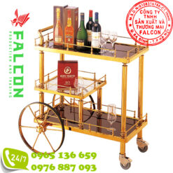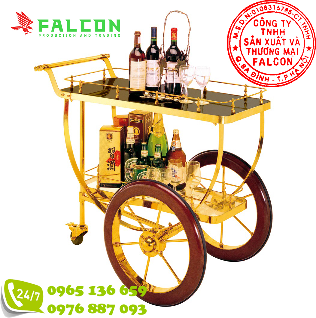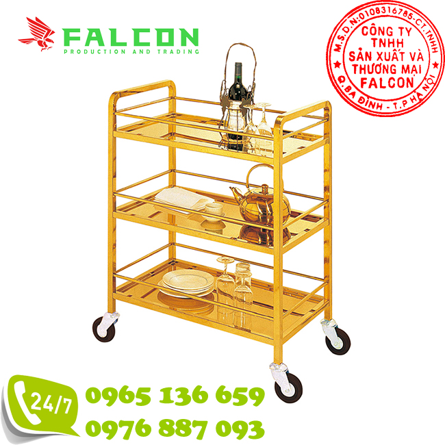 Cty TNHH Falcon đã cho ra mắt một sản phẩm mang tên xe đẩy phục vụ 3 tầng. Xe đẩy phục vụ 3 tầng có kích thước nhỏ gọn và khoác lên mình một màu vàng rất chi là bắt mắt. Xe được thiết kế với bộ khung 100% là inox mạ vàng, được sơn một lớp sơn tĩnh điện.