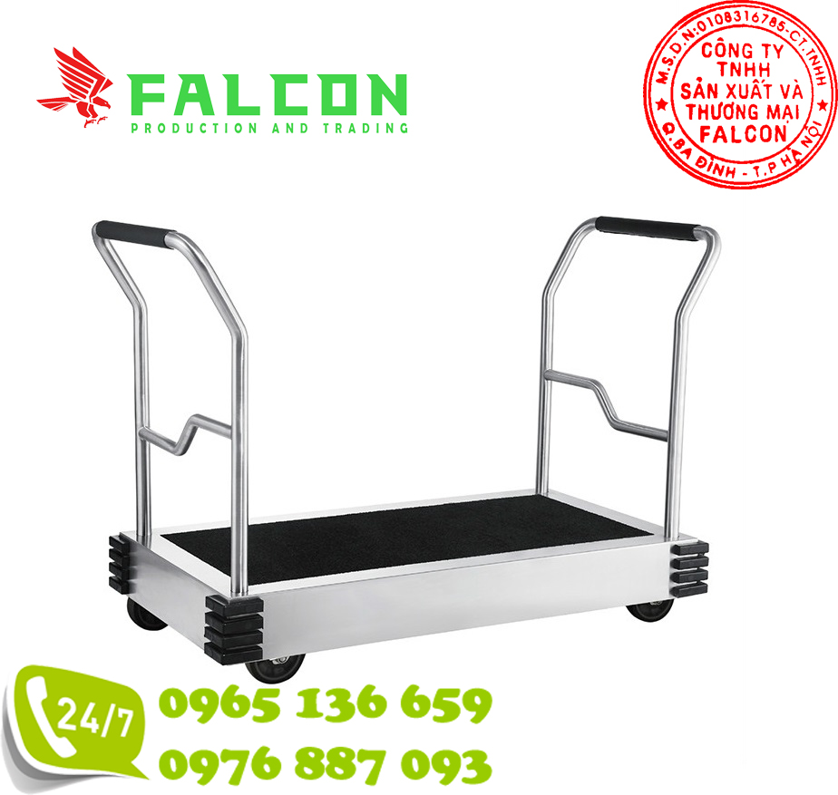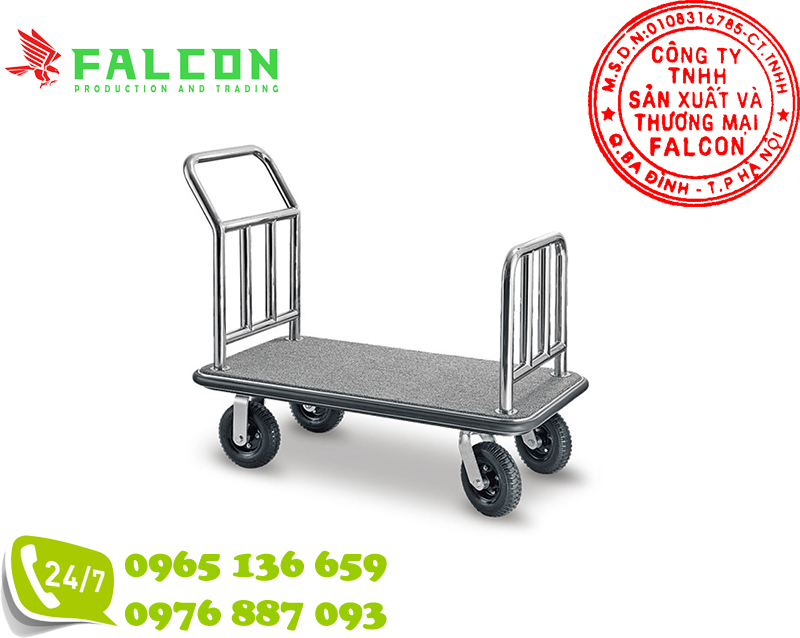 Hiện nay đã có rất nhiều nhà hàng khách sạn, resort, tin tưởng và đặt mua sản phẩm xe đẩy hành lý tại Cty Falcon chúng tôi. Cty chúng tôi cam kết sẽ đem đến cho bạn những sản phẩm chất lượng nhất, giá rẻ nhất và mẫu mã đẹp nhất trên thị trường.